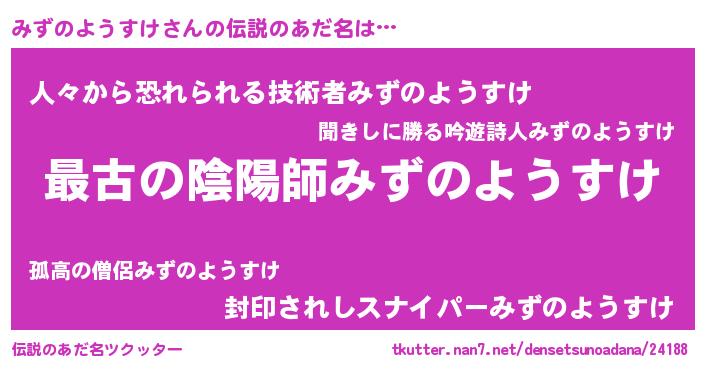 | 意味不明あだ名 | 『みずのようすけフォーエバー』 |