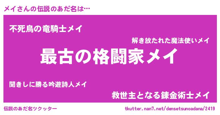 | 意味不明あだ名 | 『自称メイ』『メイフォーエバー』 |