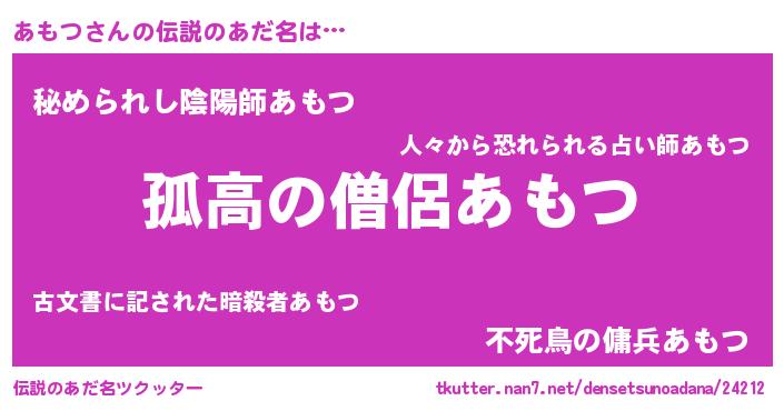 | 女子向けラノベタイトル風あだ名 | 『あもつは平凡を望む』『闇のあもつ』 |