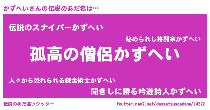 | 意味不明あだ名 | 『とにかく怪しいかずへい』 |