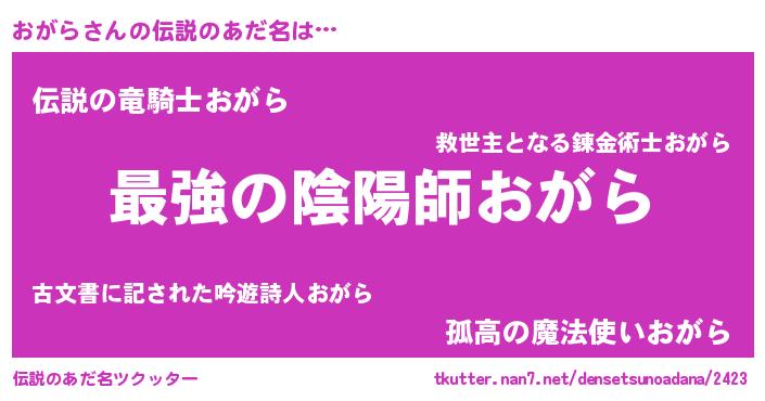 | 女子向けラノベタイトル風あだ名 | 『おがらストレイドッグス』 |