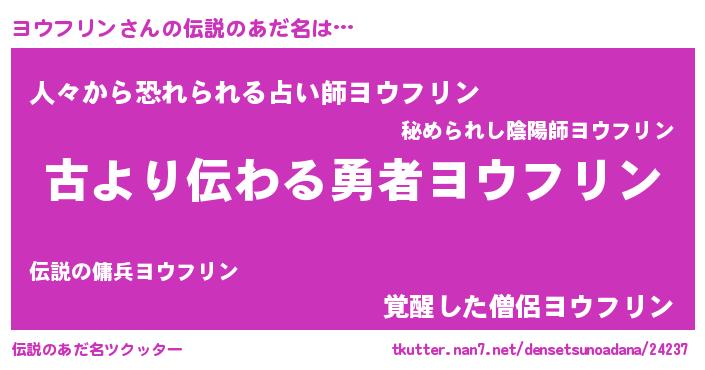 | 意味不明あだ名 | 『永久保存ヨウフリン』『自称ヨウフリン』 |