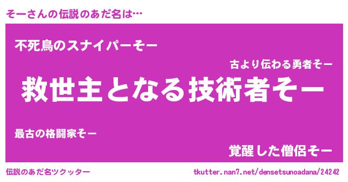 | 男性向けラノベタイトル風あだ名 | 『ノーゲーム・ノーソー』『そーの憂鬱』 |