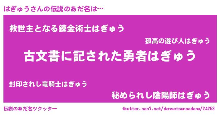 | ヒーロー風カッコイイあだ名 | 『ネオハギュウ』『サイバー戦士ハギュウ』 |