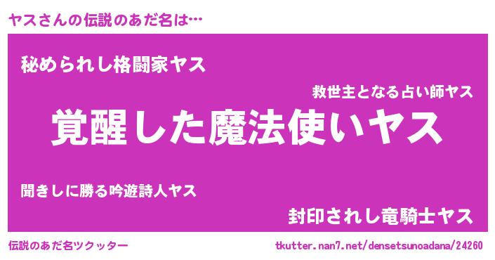 | 男性向けラノベタイトル風あだ名 | 『この素晴らしい世界にヤスを!』 |