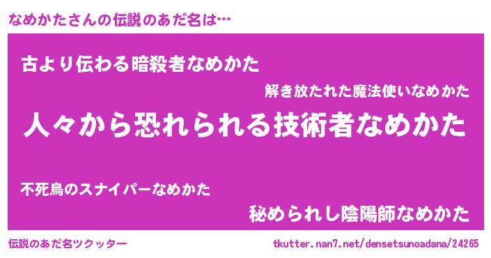 | 肩書あだ名 | 『なめかた助教授』『なめかた総統』 |