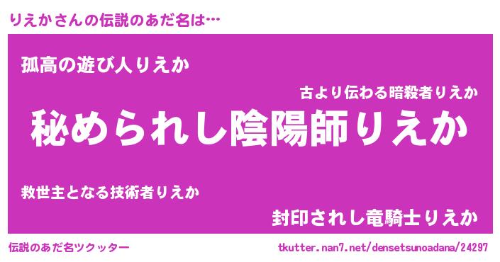 | ヒーロー風カッコイイあだ名 | 『超時空戦士リエカ』『仮面リエダー』 |