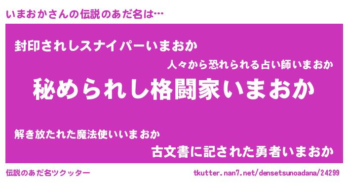 | ヒーロー風カッコイイあだ名 | 『ウルトラいまおかマン』『仮面イマダー』 |