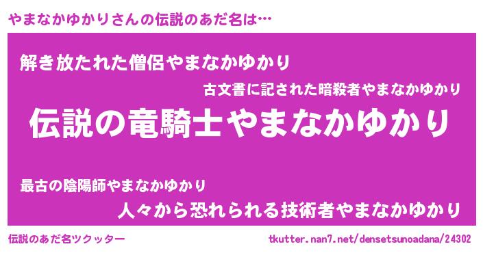 | 女子向けラノベタイトル風あだ名 | 『(仮)やまなかゆかりのやんごとなき事情』 |