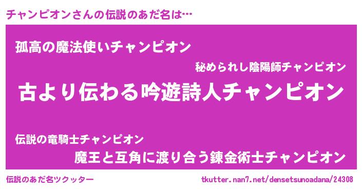 | 女子向けラノベタイトル風あだ名 | 『チャンピオンアンティーク』 |
