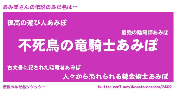 | ヒーロー風カッコイイあだ名 | 『スーパーアミポ』『暗黒騎士アミ』 |