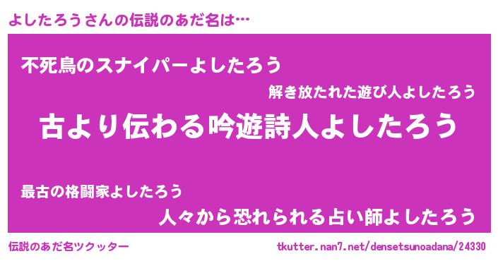 | 意味不明あだ名 | 『住所不定無職よしたろう(5歳)』 |