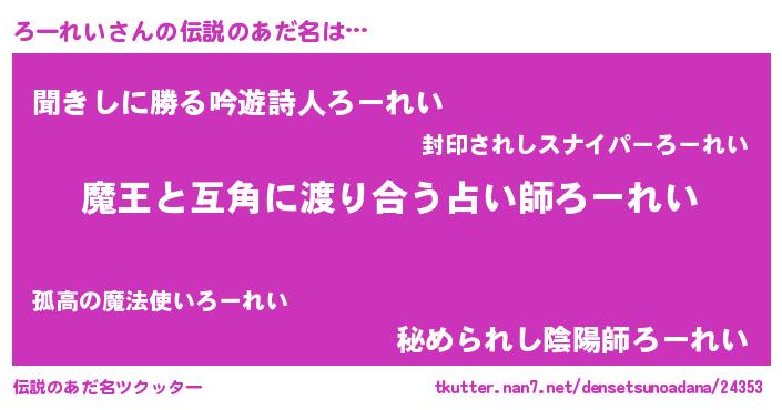 | ポケモン風あだ名 | 『メロロッー』『ローセウス』 |