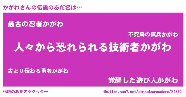 | ヒーロー風カッコイイあだ名 | 『正義の使者かがわ』『仮面カガダー』 |