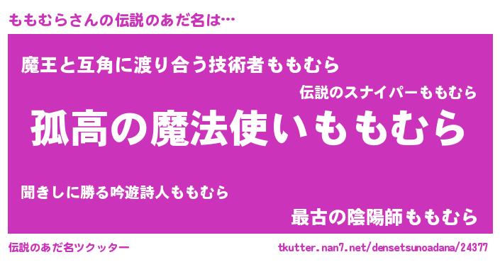 | 男性向けラノベタイトル風あだ名 | 『ダンジョンにももむらを求めるのは間違っているだろうか』 |