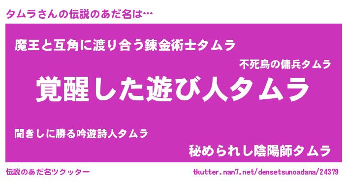 | ポケモン風あだ名 | 『ヒタムラ』『タムゴンZ』 |