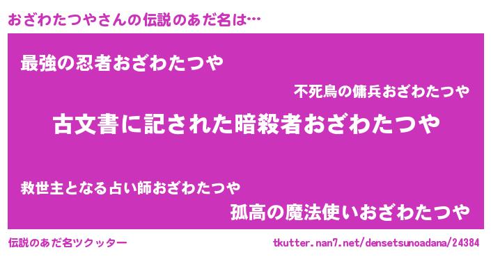 | 男性向けラノベタイトル風あだ名 | 『この素晴らしい世界におざわたつやを!』 |