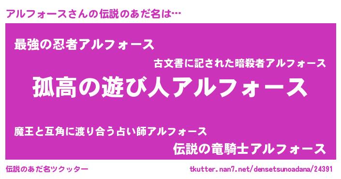 | ヒーロー風カッコイイあだ名 | 『暗黒騎士アル』『仮面アルダー』 |