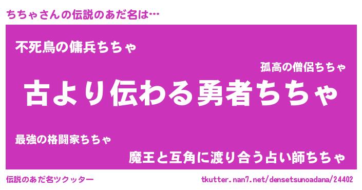 | 胡散臭い通販商品みたいなあだ名 | 『来世でも幸せになれる水素水…その名も「ちちゃ」』 |