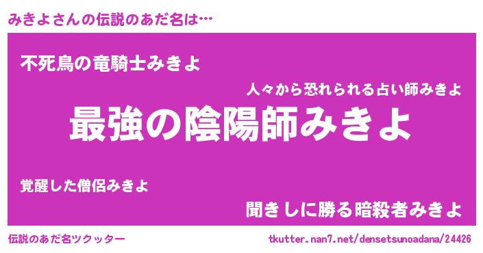| ファンタジー風あだ名 | 『エターナルミキヨー』『カークミキラー』 |