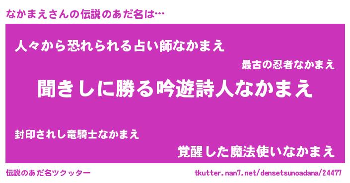 | ヒーロー風カッコイイあだ名 | 『仮面ナカダー』『ネオナカマエ』 |