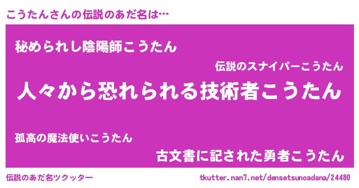 | ヒーロー風カッコイイあだ名 | 『仮面コウダー』『友情の使者こうたん』 |