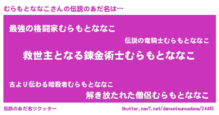 | 男性向けラノベタイトル風あだ名 | 『この素晴らしい世界にむらもとななこを!』 |