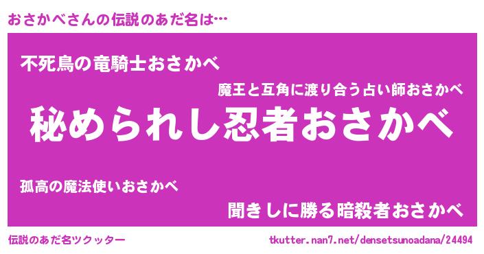 | 意味不明あだ名 | 『自称おさかべ』『おさかべフォーエバー』 |