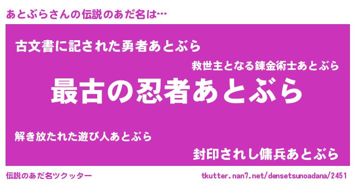 | 男性向けラノベタイトル風あだ名 | 『はたらくあとぶらさま!』 |