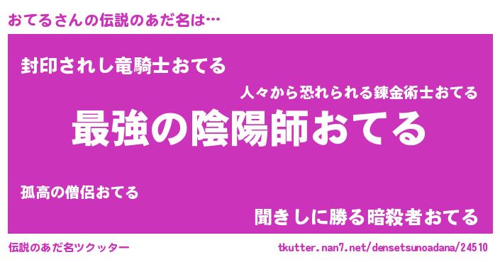 | 男性向けラノベタイトル風あだ名 | 『Re:おてるから始める異世界生活』 |