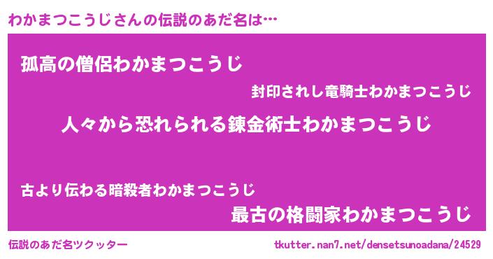| 男性向けラノベタイトル風あだ名 | 『おまえをオタクにしてやるから、俺をわかまつこうじにしてくれ! 』 |