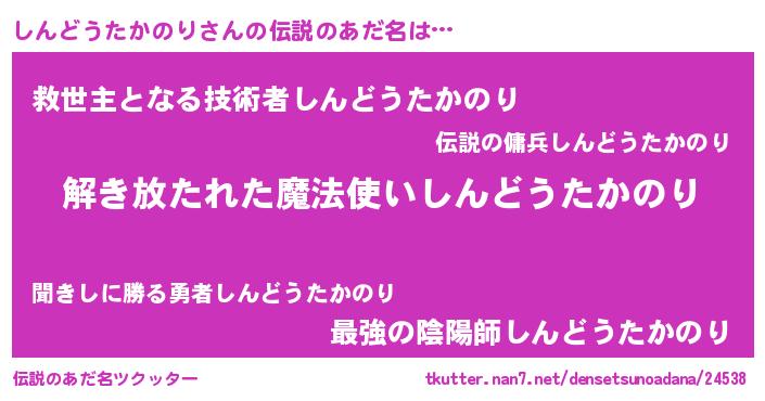 意味不明あだ名 | 『とにかく怪しいしんどうたかのり』 |