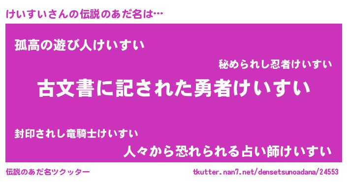 | 意味不明あだ名 | 『住所不定無職けいすい(77歳)』 |