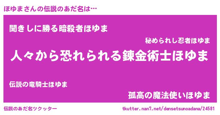 | 意味不明あだ名 | 『眠気覚ましガムほゆま味』『自称ほゆま』 |