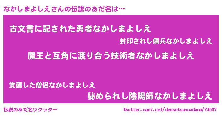 | 意味不明あだ名 | 『自称なかしまよしえ』 |