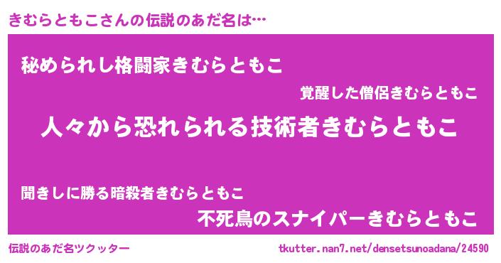 | 男性向けラノベタイトル風あだ名 | 『おまえをオタクにしてやるから、俺をきむらともこにしてくれ! 』 |