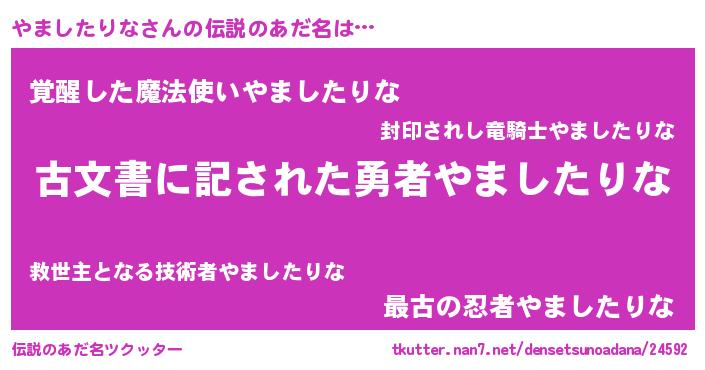 | ヒーロー風カッコイイあだ名 | 『ネオヤマシタリナ』『幻影騎士ヤマ』 |