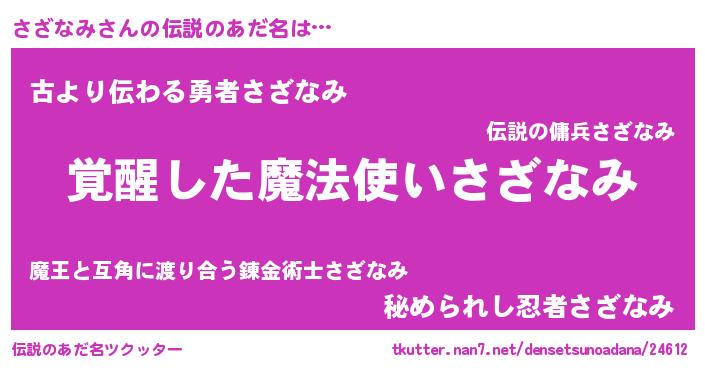 | ヘコむあだ名 | 『さざお』『さざなみ(遠い目)』 |