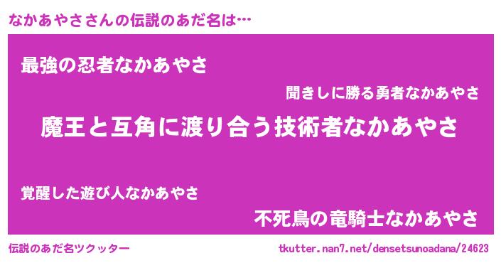 ヒーロー風カッコイイあだ名 | 『仮面ナカダー』『正義の使者なかあやさ』 |