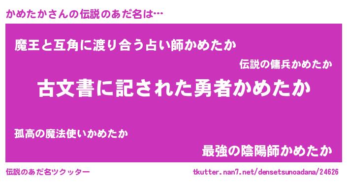 | ヒーロー風カッコイイあだ名 | 『ネオカメタカ』『仮面カメダー』 |