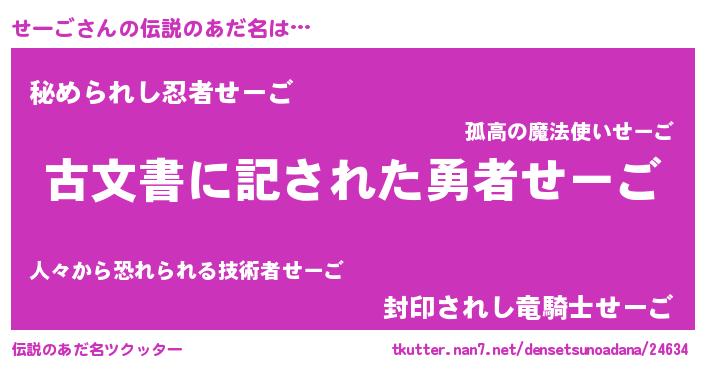 | ヒーロー風カッコイイあだ名 | 『ネオセーゴ』『ウルトラせーごマン』 |