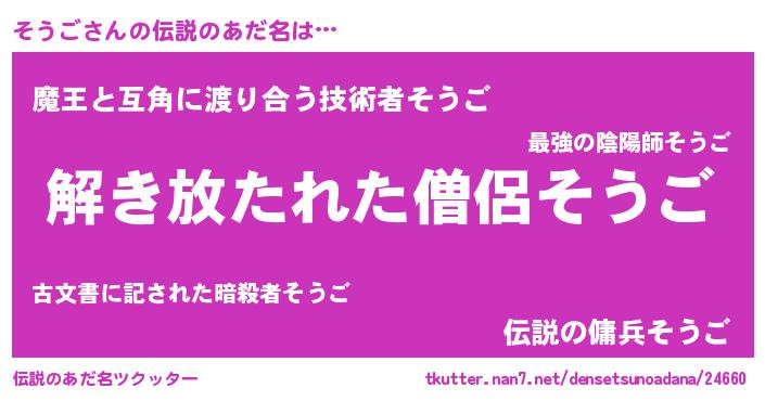 | ヒーロー風カッコイイあだ名 | 『最強戦士ソウゴ』『銀牙騎士ソウ』 |
