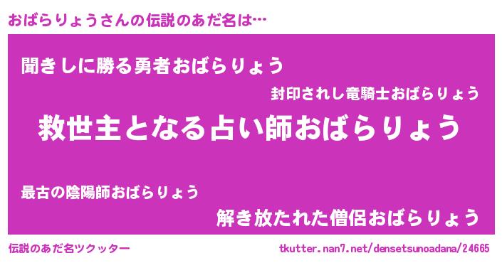 | 男性向けラノベタイトル風あだ名 | 『ノーゲーム・ノーオバラリョウ』 |