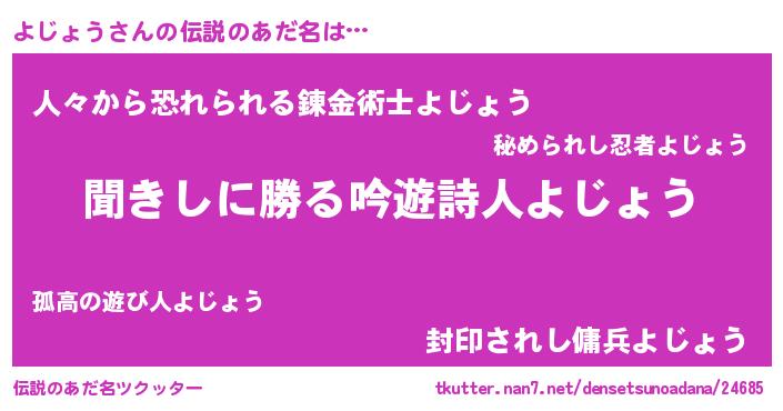 | 意味不明あだ名 | 『永久保存よじょう』『自称よじょう』 |