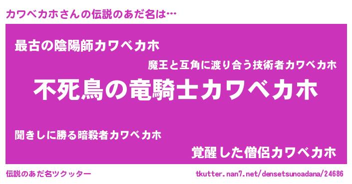 | ヒーロー風カッコイイあだ名 | 『スーパーカワベカホ』『魔戒騎士カワ』 |