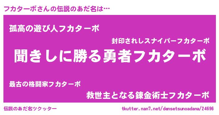 | 意味不明あだ名 | 『自称フカターボ』『永久保存フカターボ』 |