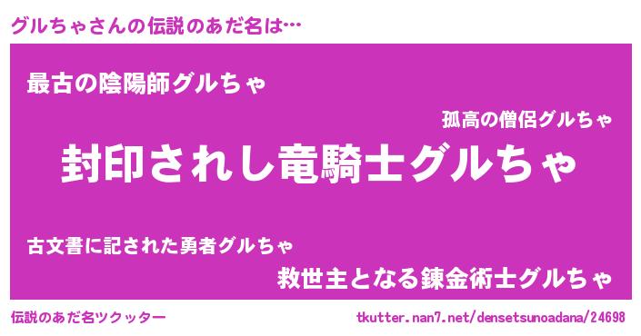 | 男性向けラノベタイトル風あだ名 | 『グルちゃに滅ぼされるだけの簡単なお仕事です』 |