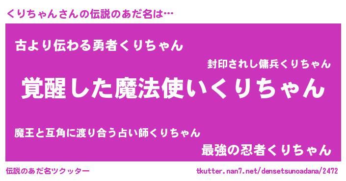 | 男性向けラノベタイトル風あだ名 | 『Re:くりちゃんから始める異世界生活』 |