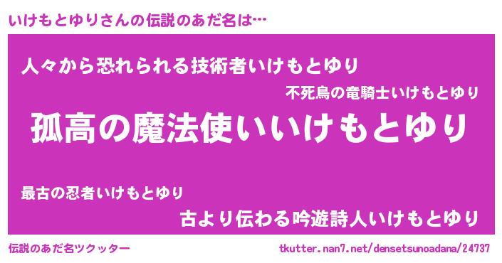 | ヒーロー風カッコイイあだ名 | 『暗黒騎士イケ』『愛の使者いけもとゆり』 |