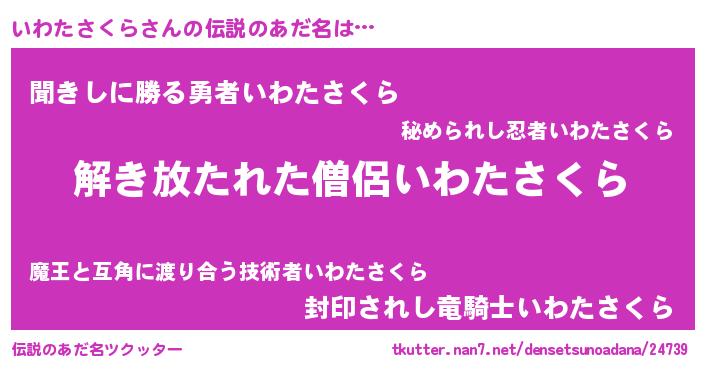 | 男性向けラノベタイトル風あだ名 | 『転生したらいわたさくらだった件』 |